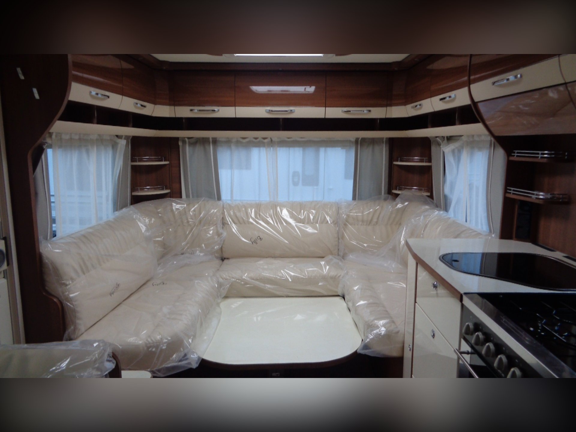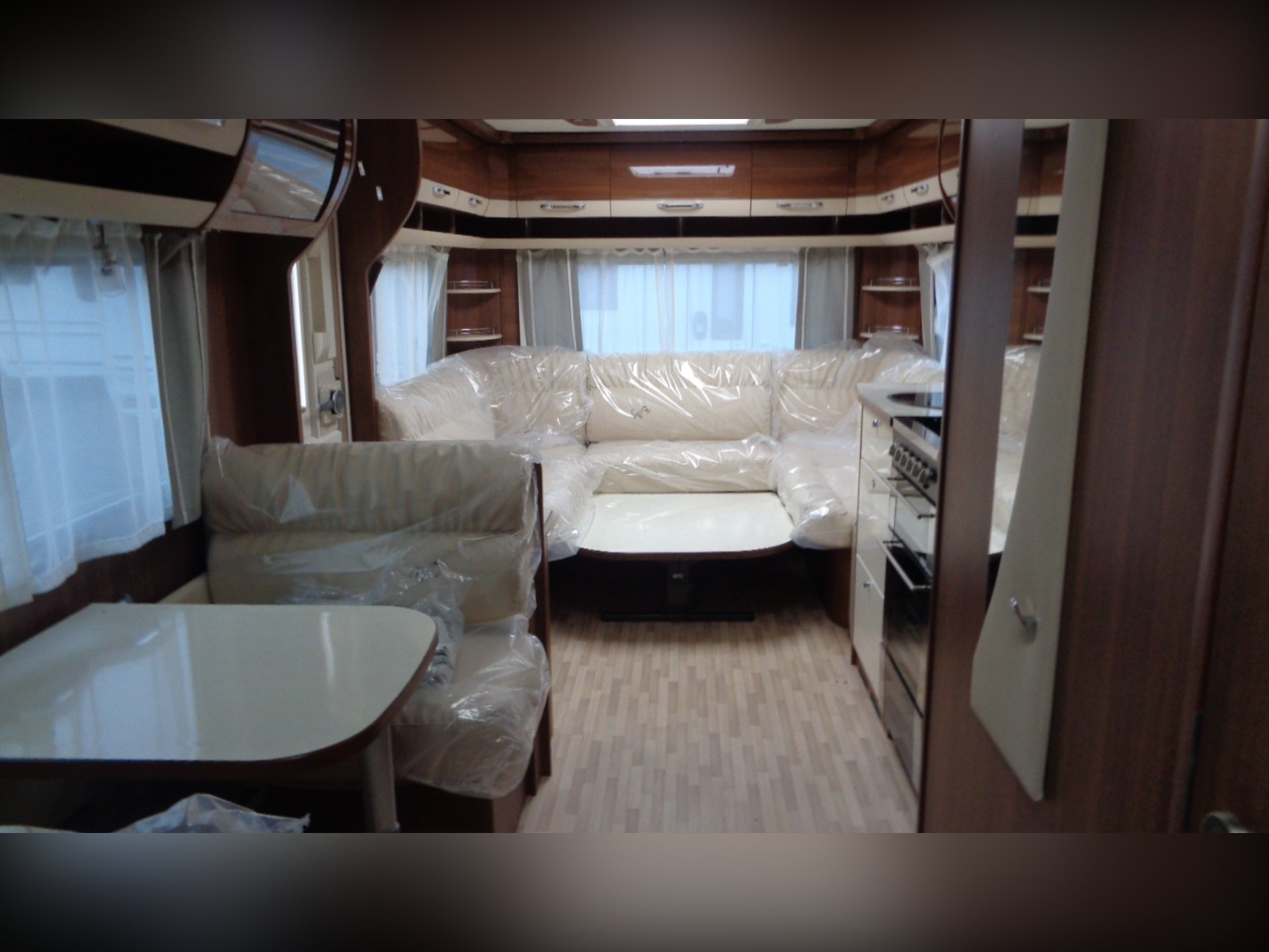 5 BERTH,FIXED ISLAND BED CARAVAN WITH SEPARATE SHOWER CUBICLE.